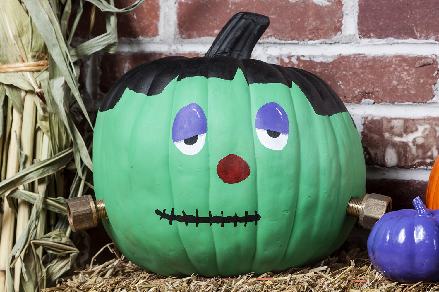 Over a drop cloth, use a foam brush to apply acrylic paint as a base color to your pumpkin.